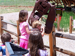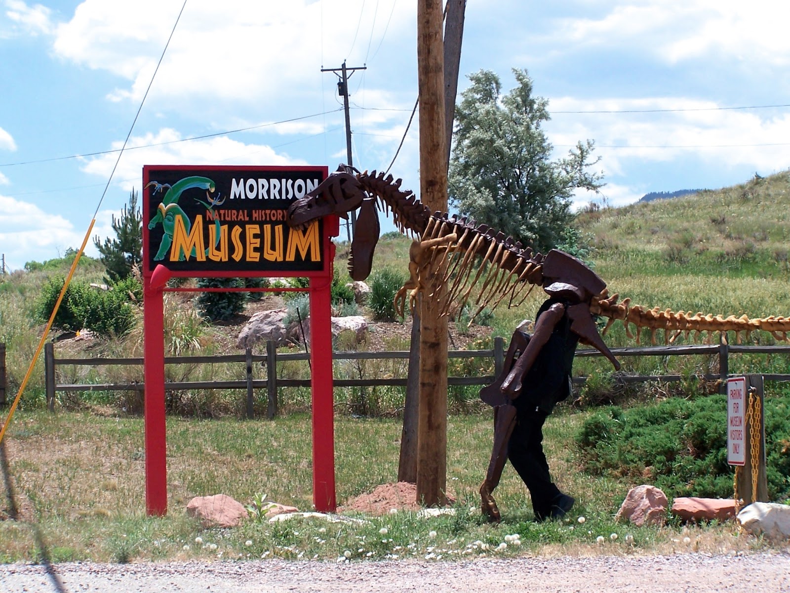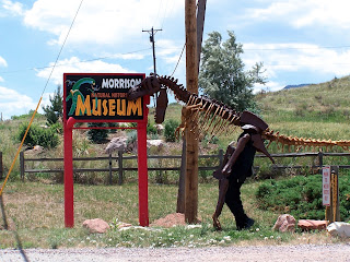 | One of those extinct animals that just doesn't need to be "Hollywoodized!" Meet Stan, the resident Tyrannosaurus rex at the Morrison Natural History Museum! You can see Pig seated in the bottom jaw for scale! Yeah, this guy was huge. |