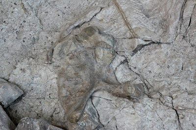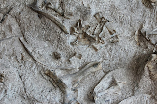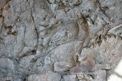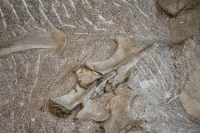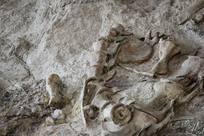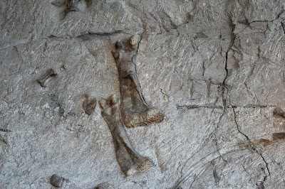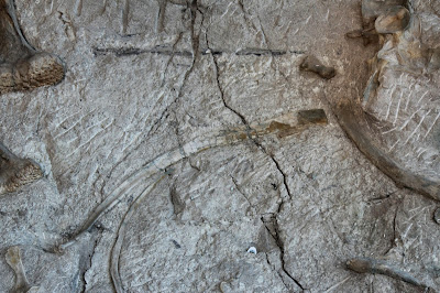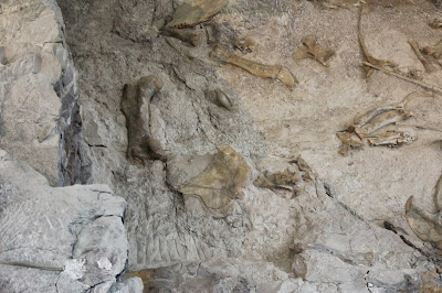 I can't identify most of the bones that I see in these pictures, but fortunately the monument sells a guide for a dollar which we bought. Although the guide doesn't have all of the bones in it (not by a long shot!), it did have a fairly wide selection. Here are a few of the bones that they identified!One of the only claws that I saw (not to say that there weren't any others out there) is in the picture below.