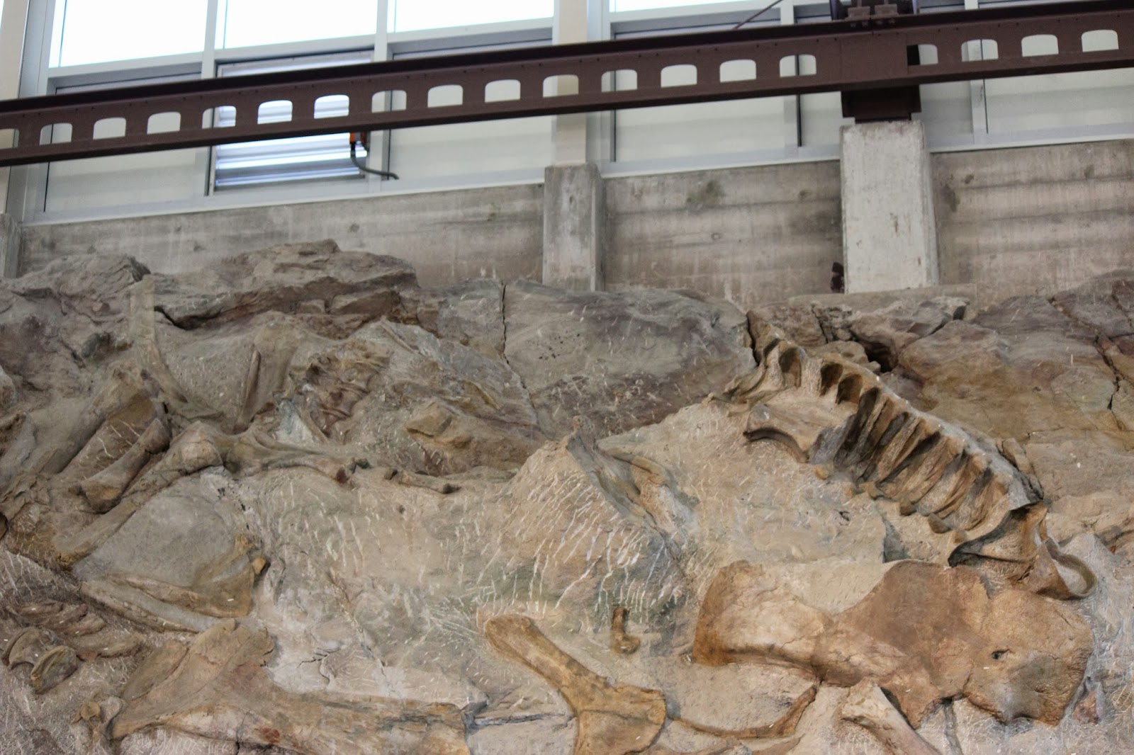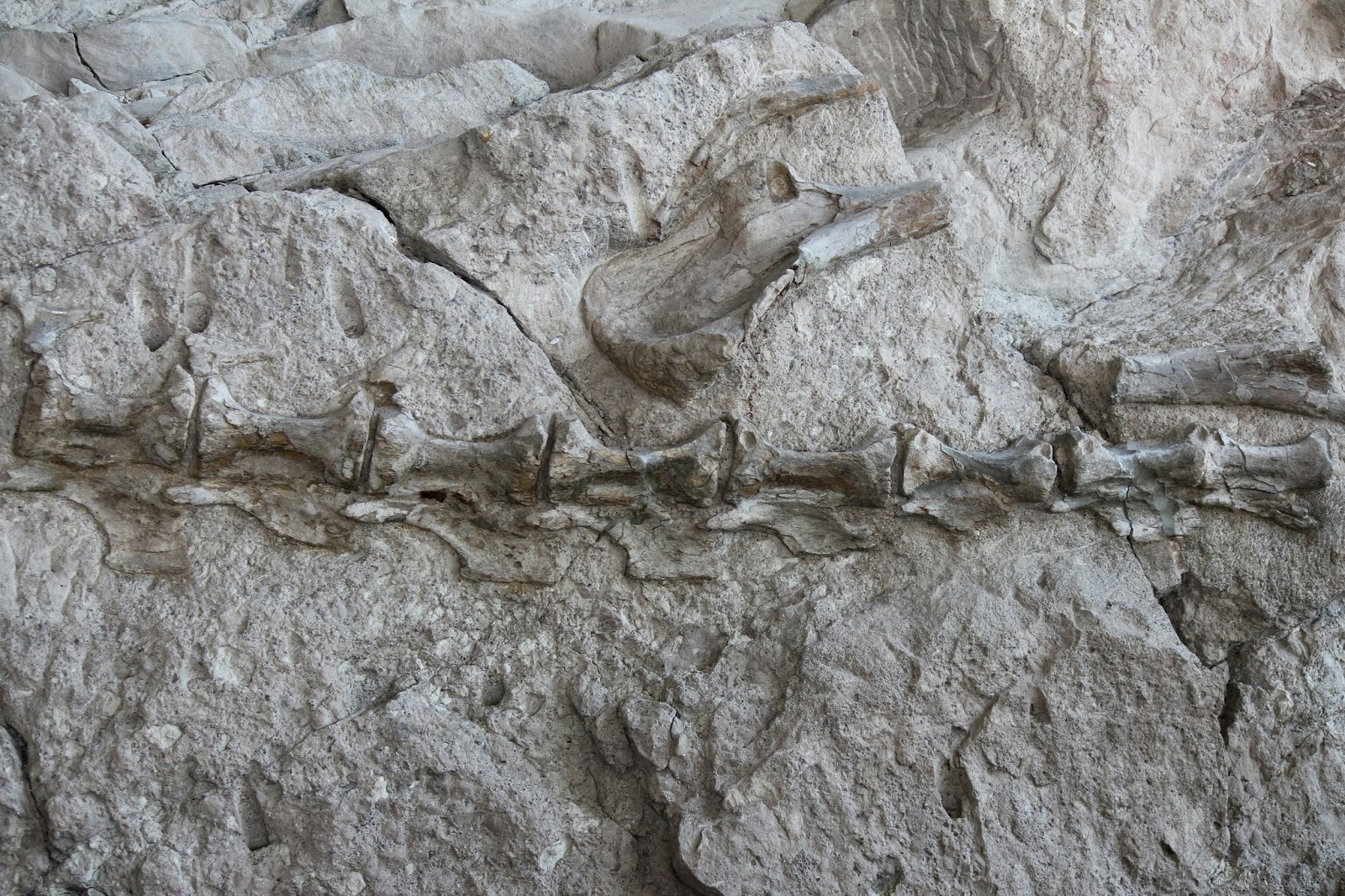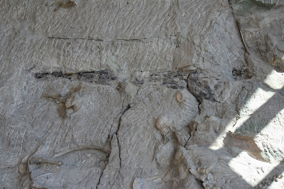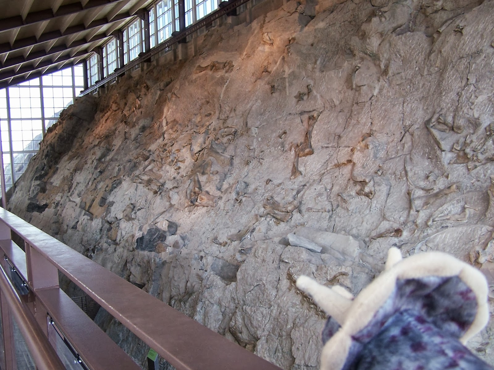 Most of what would be considered the "cool fossils" (like skulls and claws) have been removed from the quarry. According to Dinosaur National Monuments website, the only two skulls that remain belong to Camarasaurus: here is one of those skulls!