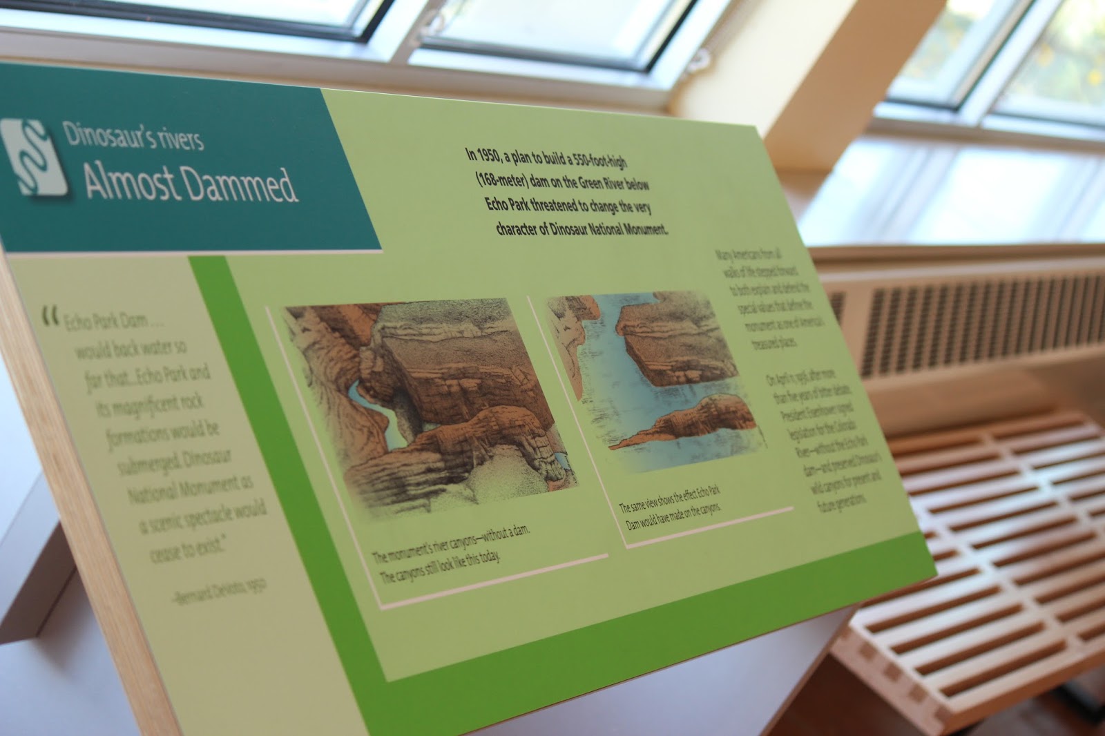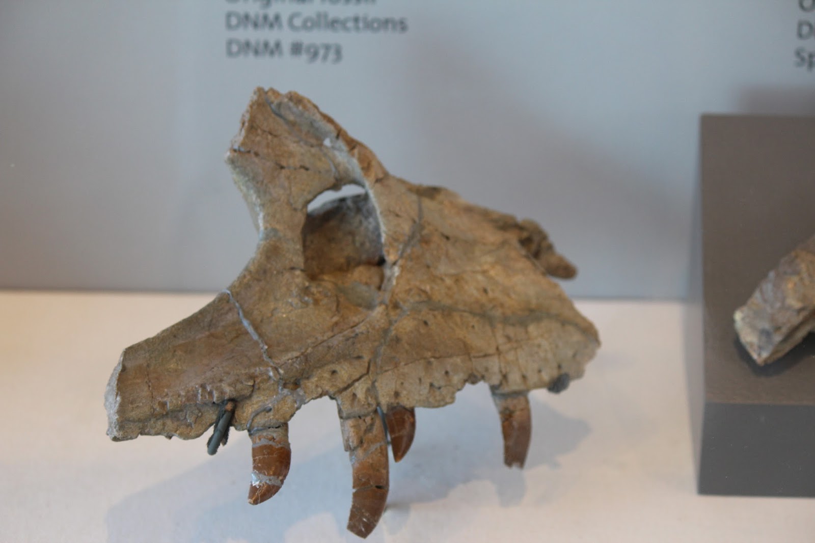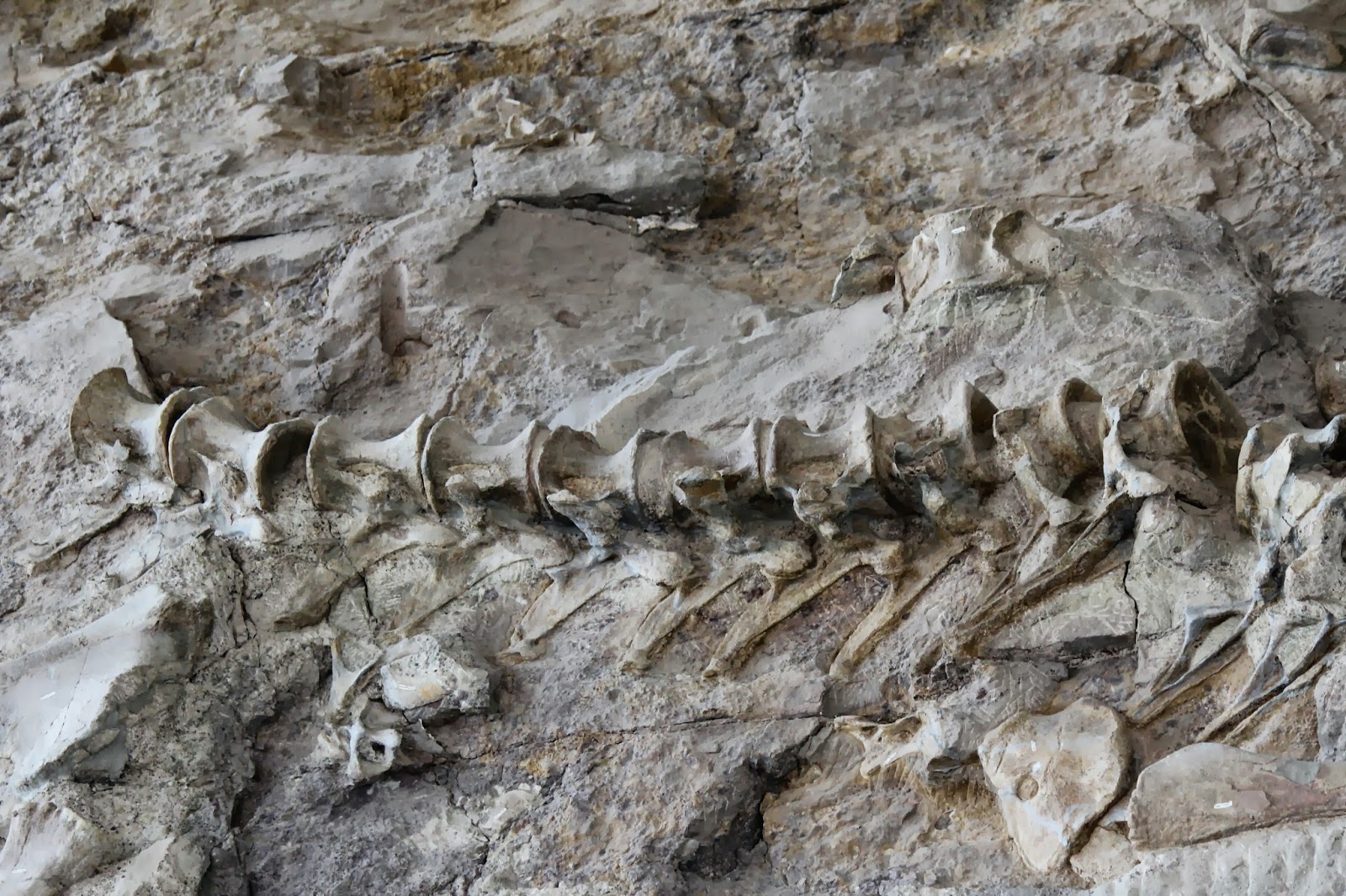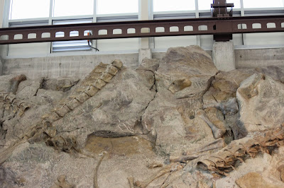 Most of what would be considered the "cool fossils" (like skulls and claws) have been removed from the quarry. According to Dinosaur National Monuments website, the only two skulls that remain belong to Camarasaurus: here is one of those skulls!