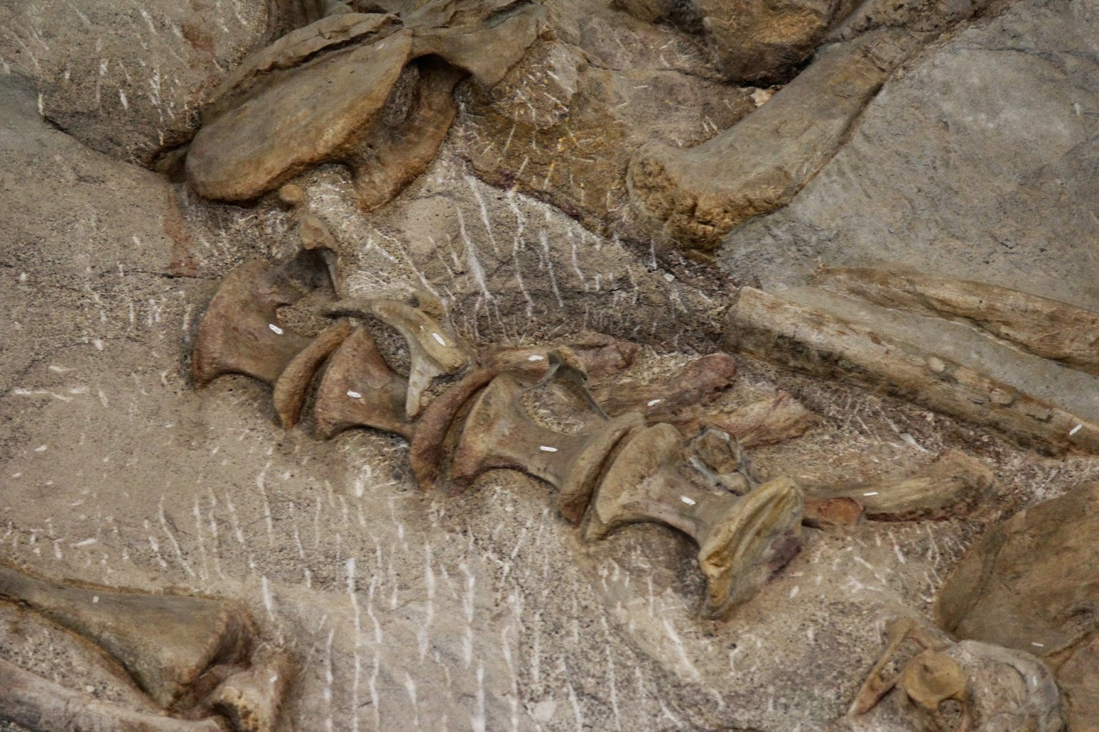 Remember before, when we mentioned most bones at the quarry are disarticulated? Well, there are some bones that are articulated, most of which are part of the vertebral columns of various animals. This looks like the tail vertebrae of something!