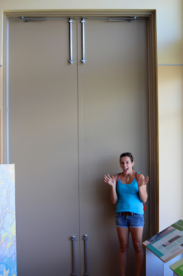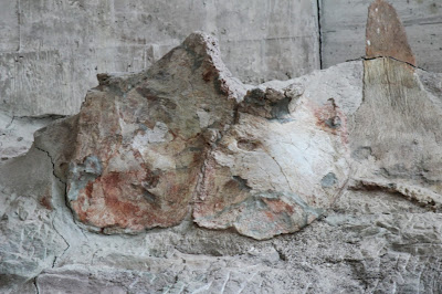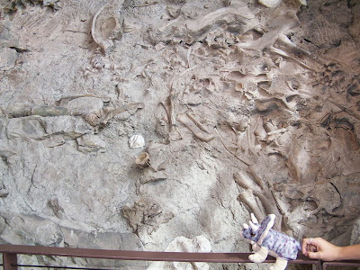 Bones aren't the only things that are found at the quarry, however! Here are two pictures of fossil wood! Pyg takes another look at the quarry face! You can see the first fossilized log right above her head in the picture.