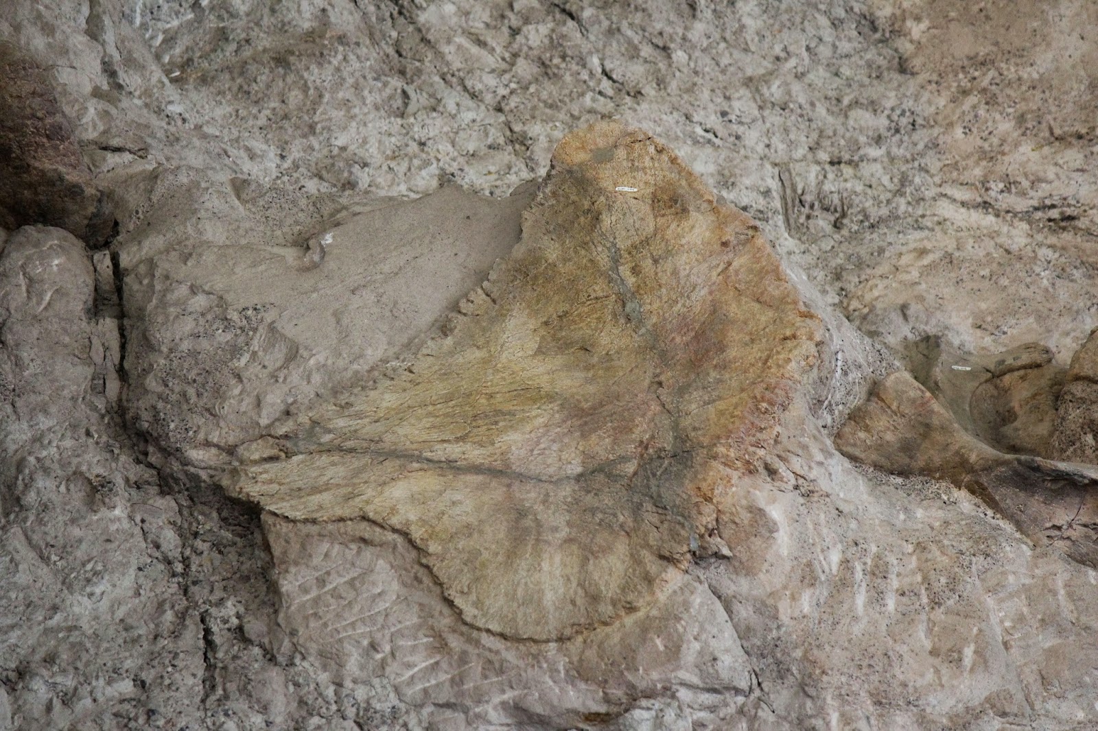 A Stegosaurus plate lies just about in the middle of this shot!